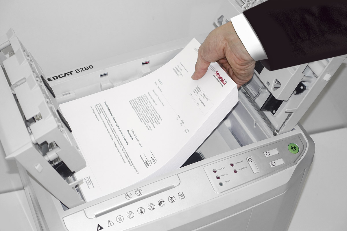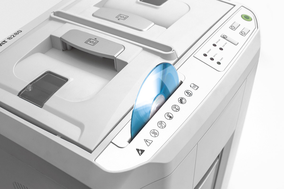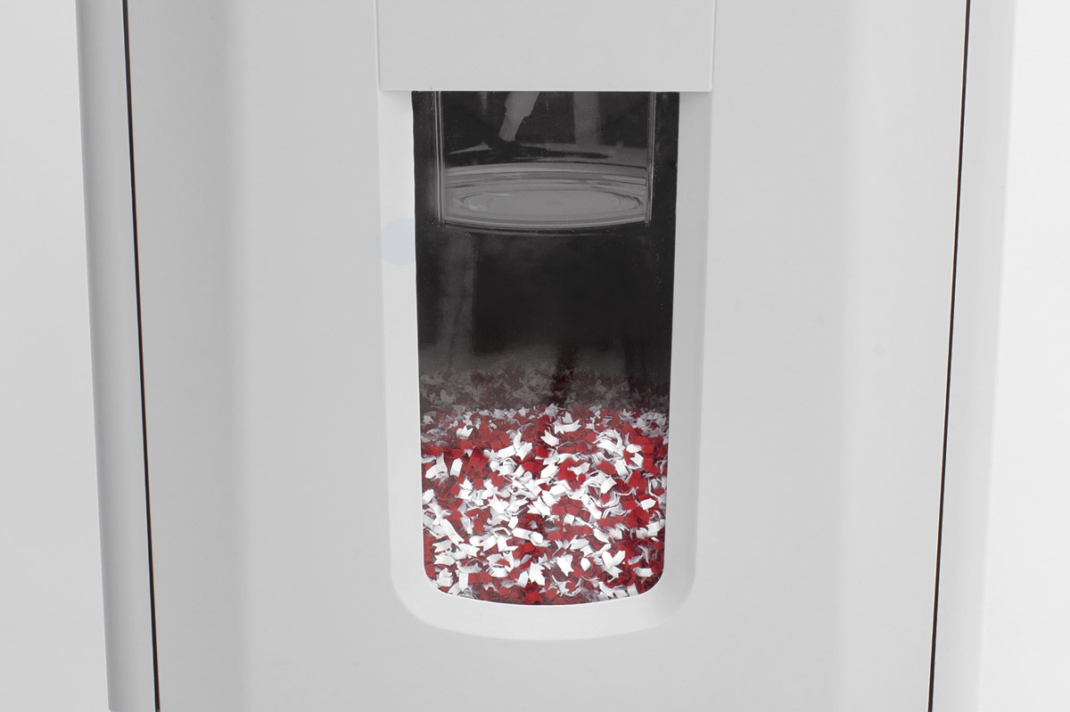 Aktenvernichter IDEAL Shredcat 8280 CC 4x10 mm. Kompakter Auto-Feed Aktenvernichter mit automatischer Zuführung von bis zu 150 Blatt Papier. Separates Schnitzen für CD-DVD-Vernichtung. Patentiertes Auto-Feed-System zum automatischen Zuführen von Papierstapeln bis zu 150 Blatt (DIN A4, 80 Gramm). Manuelle Zufuhr von bis zu 6 Blättern auf einmal. Übersichtliches Bedienfeld mit LED-Leuchtanzeige für Betriebsoptionen und Drucktasten für Position, Stopp und Rückkehr. Automatische Start- und Stoppanzeige durch leichten Augenschutz. Automatische Abschaltung im EcoMode-Modus. Geräuscharmer, leistungsstarker und energieeffizienter Motor. Separates Schneiden für CDs/DVDs/Kreditkarten. Sicherer Umgang mit dem Aktenvernichter durch umfangreiches Sicherheitspaket. Abnehmbarer Papierauffangbehälter mit großem Sichtfenster als Füllstandsanzeige und automatischer Abschaltung zum sicheren Entleeren des Auffangbehälters. Behälterkapazität: 30 Liter. Separate Auffangschale für CDs/DVDs/Kreditkarten. Ausgestattet mit Lenkrollen. Hergestellt in China nach idealen Qualitätsspezifikationen. 2 Jahre Garantie auf alle Teile. Abmessungen (HxBxT): 520 x 444 x 360 mm, Gewicht 14,5 kg. DIN 66399 Sicherheitsstufe P4.