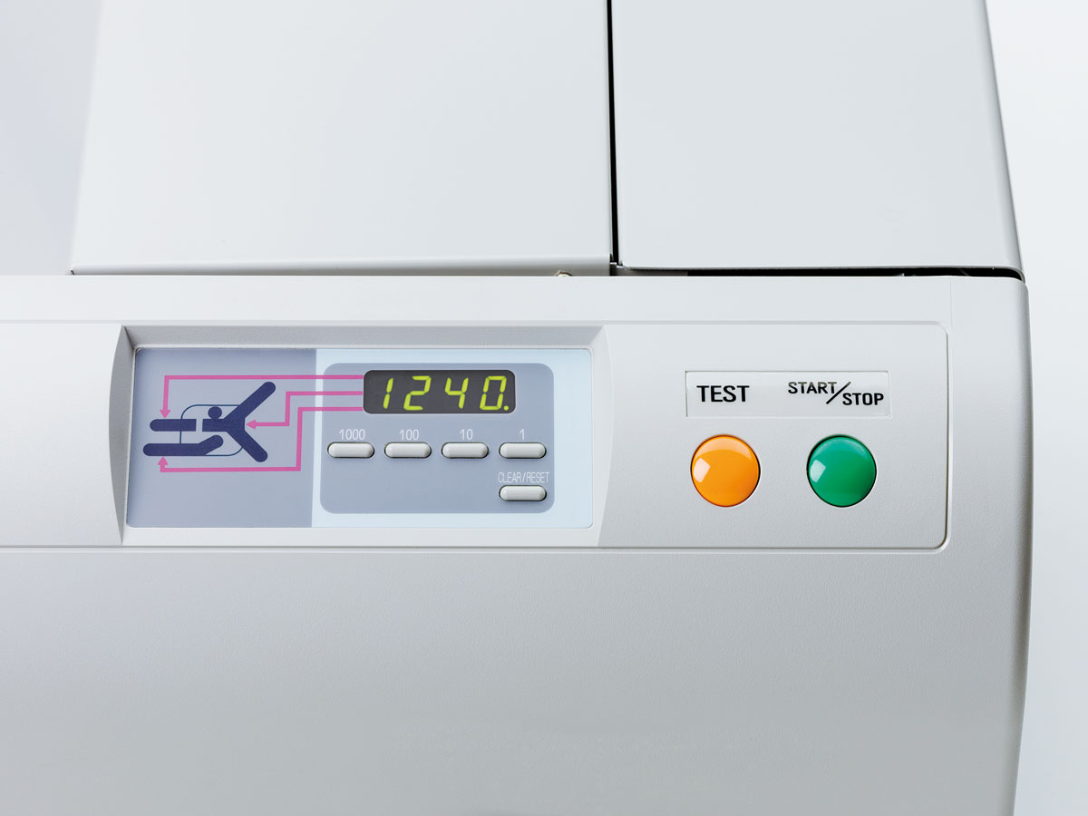 Effiziente Falzmaschine für A4-Format mit Wahltaste zum schnellen Einstellen der Falzmethode. Die richtige Faltmethode ist im Handumdrehen eingestellt. Geeignet für A4-Papierformat. Verarbeitet Papierqualitäten von 65 bis 130 g/m² (bis zu 150 g/m² Einfachfalz). Schnelle Falzgeschwindigkeit von bis zu 7.000 Blatt pro Stunde bei einem einzigen Falz. Klappbarer und verstellbarer Anlegetisch für bis zu 350 Blatt (65 g/m²). Drei Gummiwalzen sorgen für den Papiervorschub. Ausgabefach mit einer Kapazität von 30-80 Blatt je nach Falzmethode. LED-Anzeige mit 4-teiligem Digitalzähler. Automatische Abschaltung mit optischem und akustischem Signal. Warnt automatisch vor Fehlern und Papierstaus. Beim Anheben des Deckels schaltet das Gerät ab. Falzarten: Einfachfalz, Wickelfalz, Zickzackfalz, Doppelparallelfalz. Für Netzspannung 230V/50Hz/61W. Abmessungen: 332 x 480/580 x 455 mm (H x B x T). Farbe: hellgrau. Gewicht 21 kg.