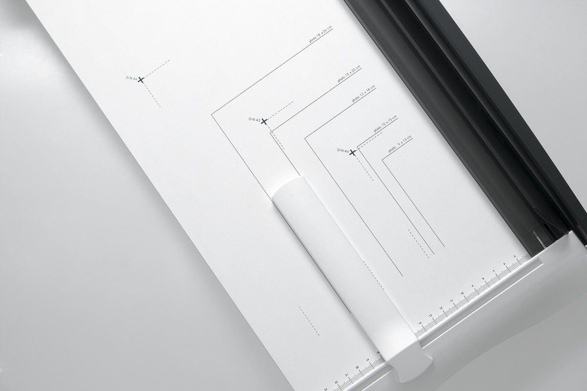 Innovativer Hebelschneider für Formate bis DIN A4 – ideal auch für Fotoausdrucke und Bastelarbeiten. Lasergeschnittenes Universalmesser und Schnittschiene aus hochwertigem Spezialstahl mit Antihaftbeschichtung. Transparente Anpressschiene mit Übergriffschutz und integriertem Präzisions-Schnittandeuter. Zwei Papieranlagen (vorne und hinten) sowie zwei Maßskalen (cm/mm). Rückanschlag (kann auf vorderer oder hinterer Papieranlage platziert werden). Papierformate von A4 bis A6 und gängige Fotoformate auf dem Schneidetisch aufgedruckt. Attraktives, funktionales Design. Schnittleistung ca.15 Blatt Papier 70 g/m2. Tischgröße: 250 x 340 x mm (B x D). Farbe: perlgrau. Gewicht: 2,5 kg.