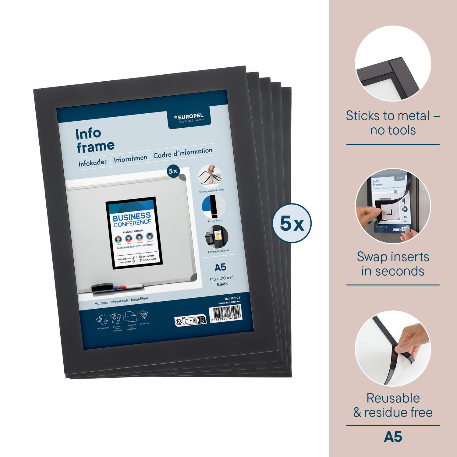 Europel Magnetischer Informationsrahmen – 5er-Set – A5 Schwarz
