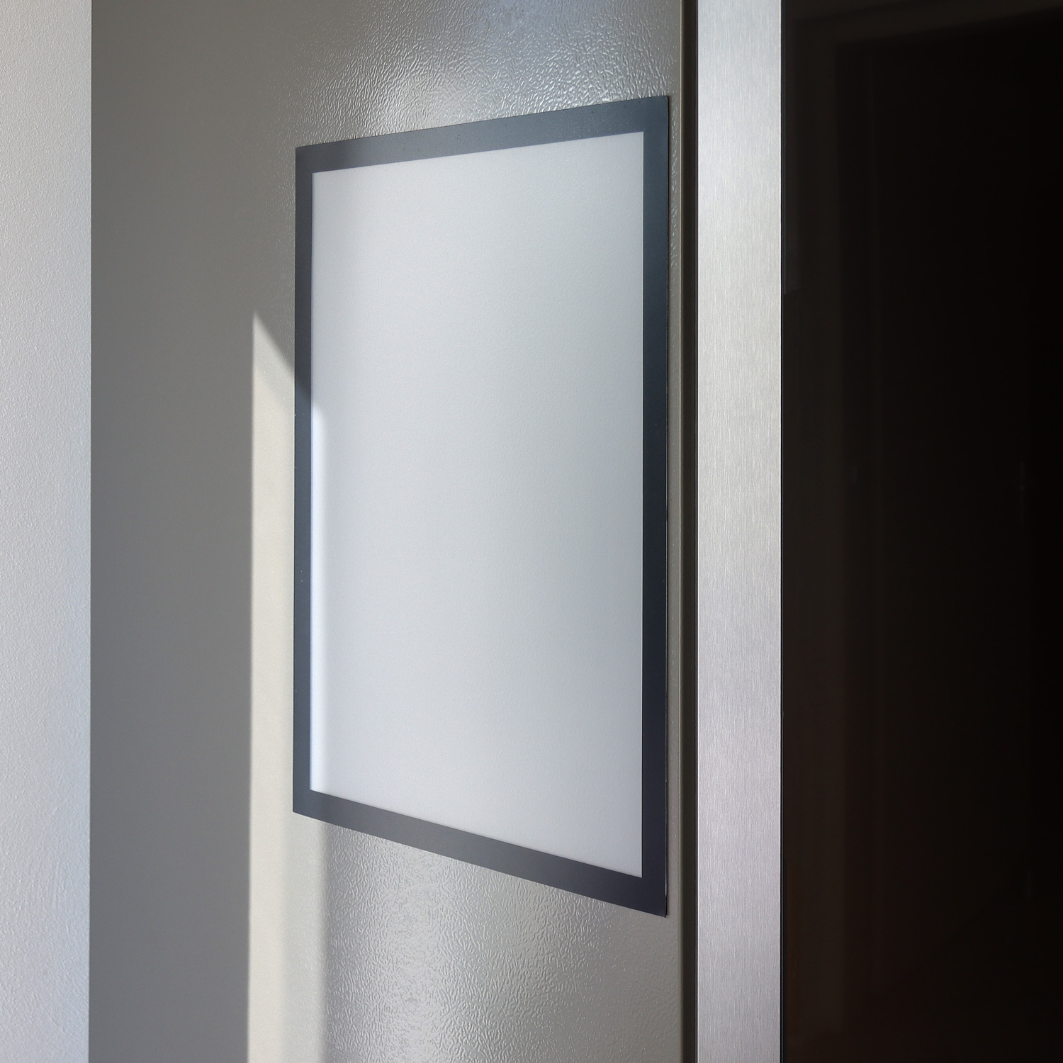 Kein Herumärgern mehr: Einfach das Dokument auf die Rückseite des Rahmen schieben auf eine Metalloberfläche drücken. Kein Klebeband, keine Pins, kein Kleber nötig. Ideal zum schnellen Austauschen von Wochenplänen, Sicherheitshinweisen oder Aushängen.