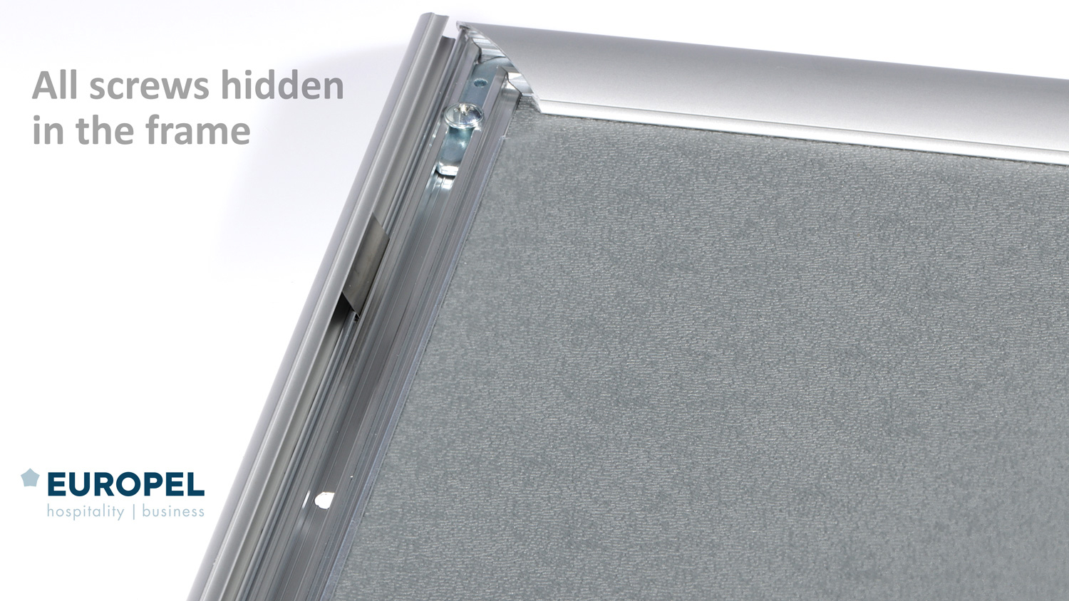 *Hochwertiger Klapprahmen mit Easy-Click-System für eine schnelle, einfache und repräsentative Präsentation. Aus eloxiertem Aluminium mit Kunststoffrückseite. Die klare transparente Antireflexfolie (PET) schützt das Poster vor Schmutz und Feuchtigkeit. Profil mit Gehrungswinkel. Geeignet für Papierformat A0. *Plakatgröße 841x1188 mm *Sichtgröße 821x1168 mm *Außenmaße 872x1219 mm *Profilbreite 25 mm *Profilstärke 11 mm *Farbe silber *Befestigungsmaterial (4 Schrauben und 4 Dübel) mitgeliefert