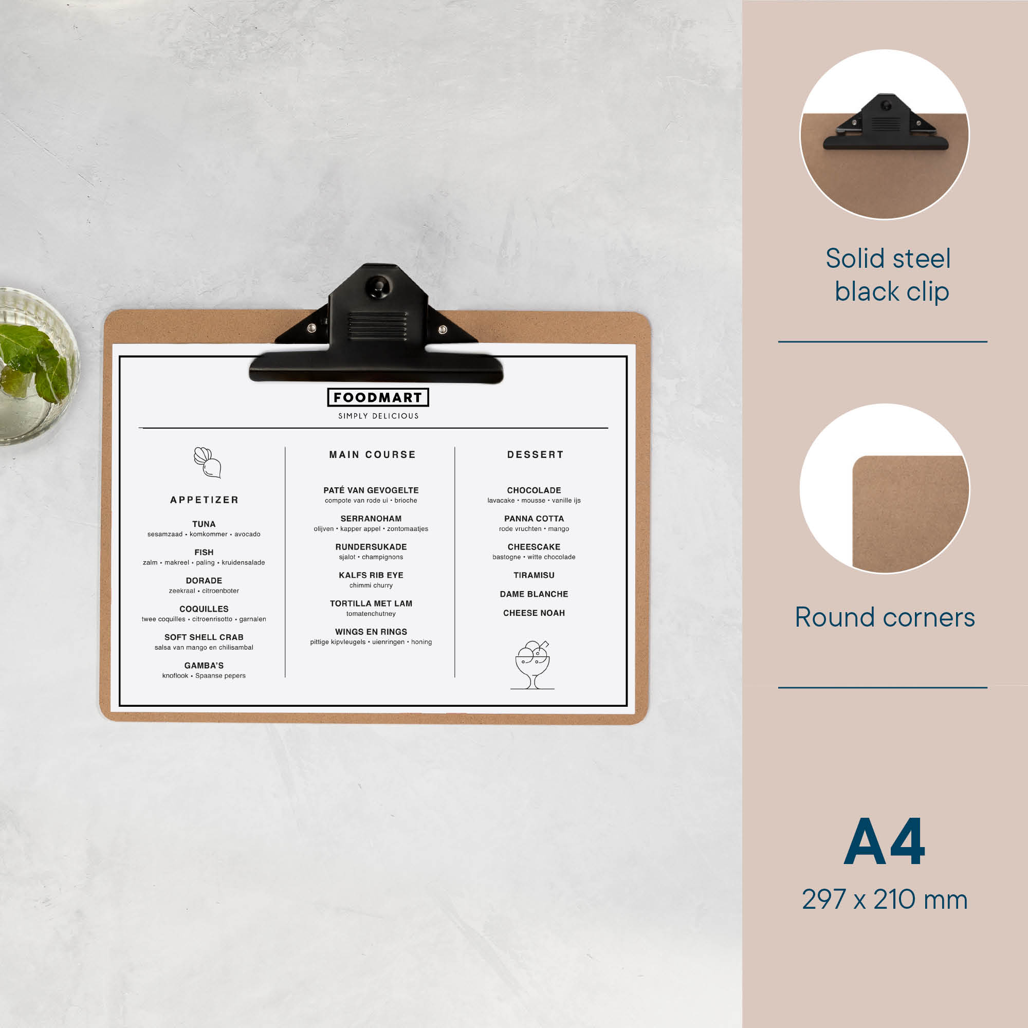 *Stabiles MDF-Klemmbrett mit natürlichem Look.