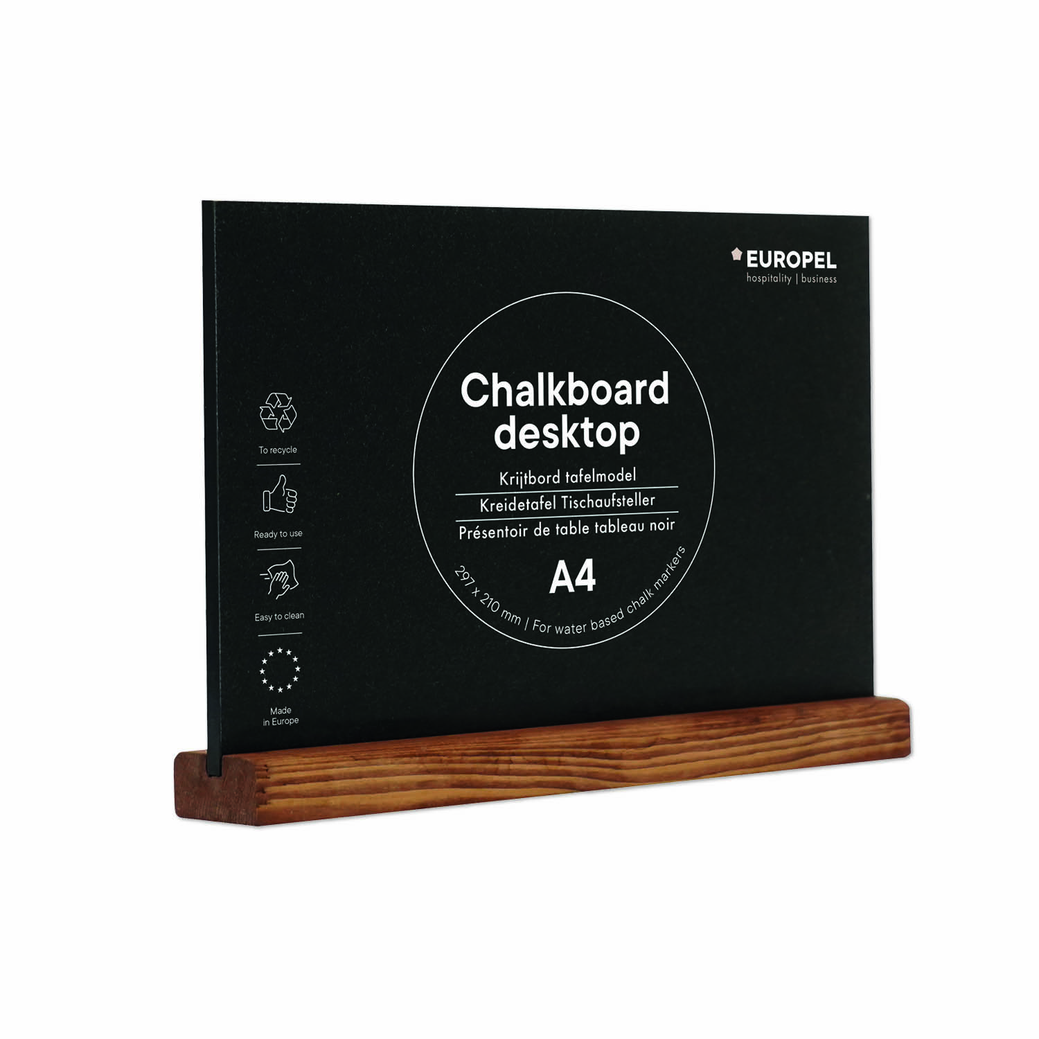 Europel Kreidetafel Tischaufsteller DIN A4 Querformat Naturholz