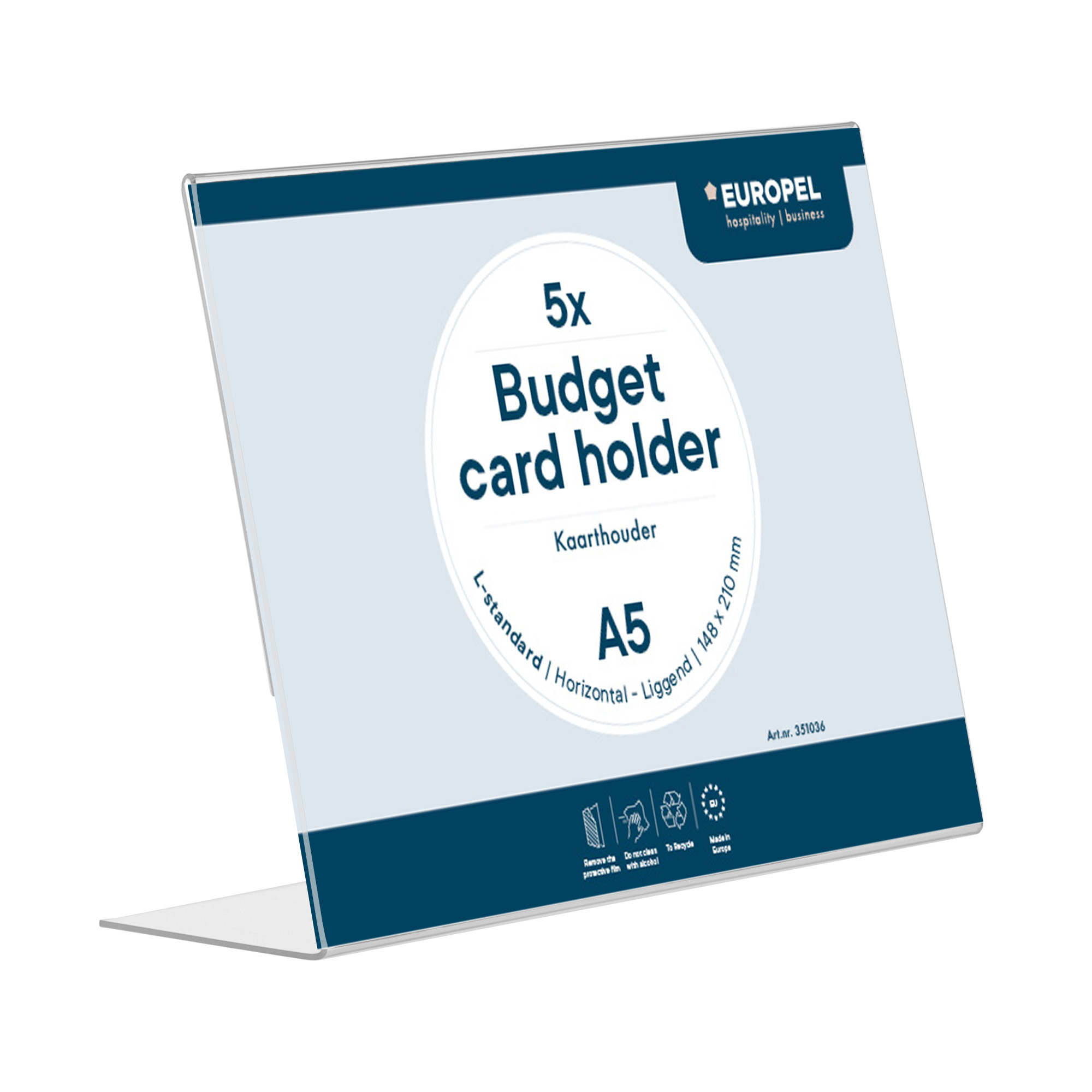 Of je nu op zoek bent naar kaart- of folderhouders voor zakelijke evenementen, restaurant of winkel, bij Europel vind je altijd de perfecte oplossing. Onze kaarthouders zijn van uitstekende kwaliteit, duurzaam en bieden een elegant design. Dankzij onze jarenlange ervaring in de branche weten we precies wat er nodig is om jouw informatie op een aantrekkelijke manier te presenteren. Wist je dat we naast kaart- en folderhouders ook een ruim assortiment badges, krijtborden, folderstandaards en nog veel meer presentatiemiddelen aanbieden? Ontdek het aanbod van Europel.