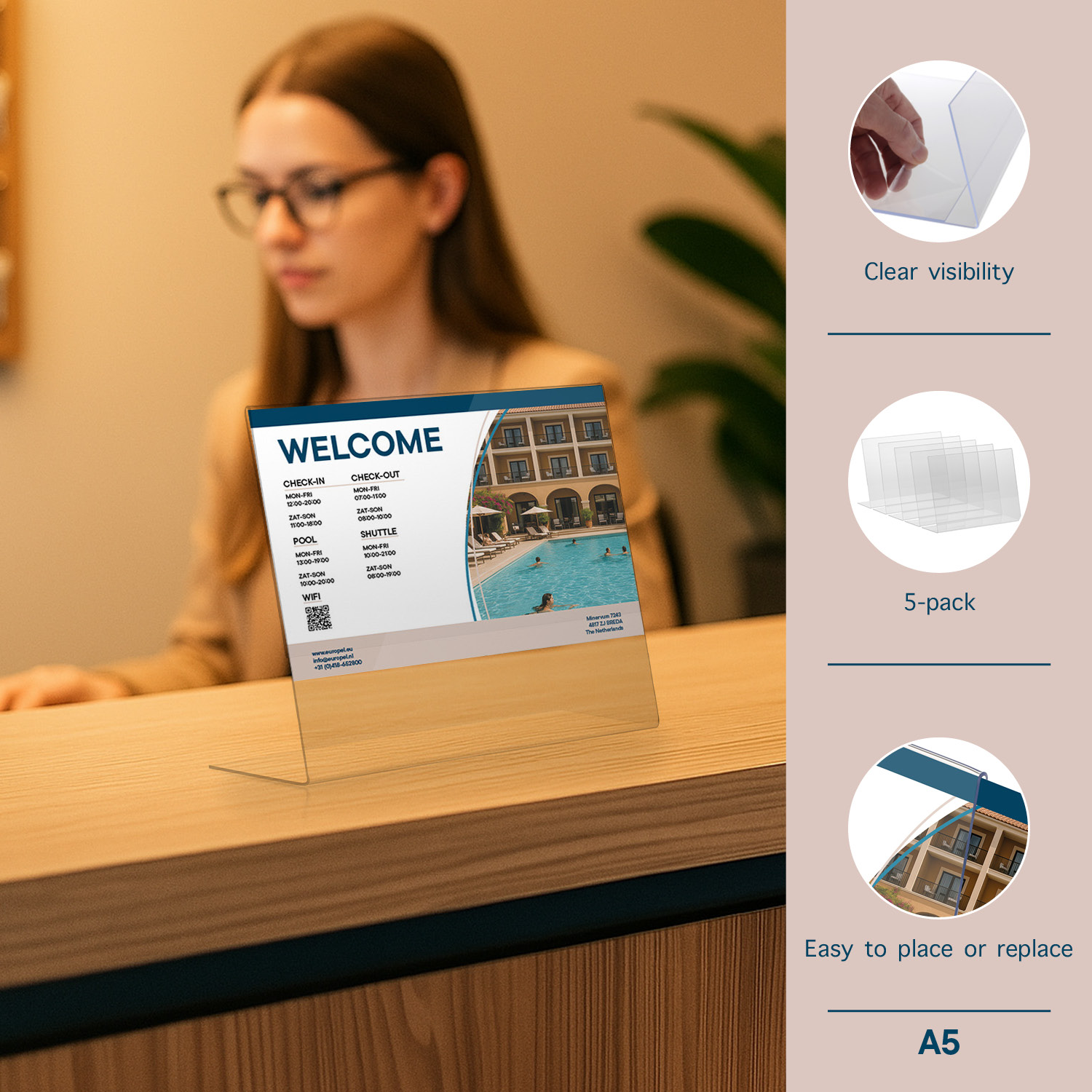Europel Kartenhalter Budget L-Ständer A5 1,5 mm Querformat Acryl – 5er-Set